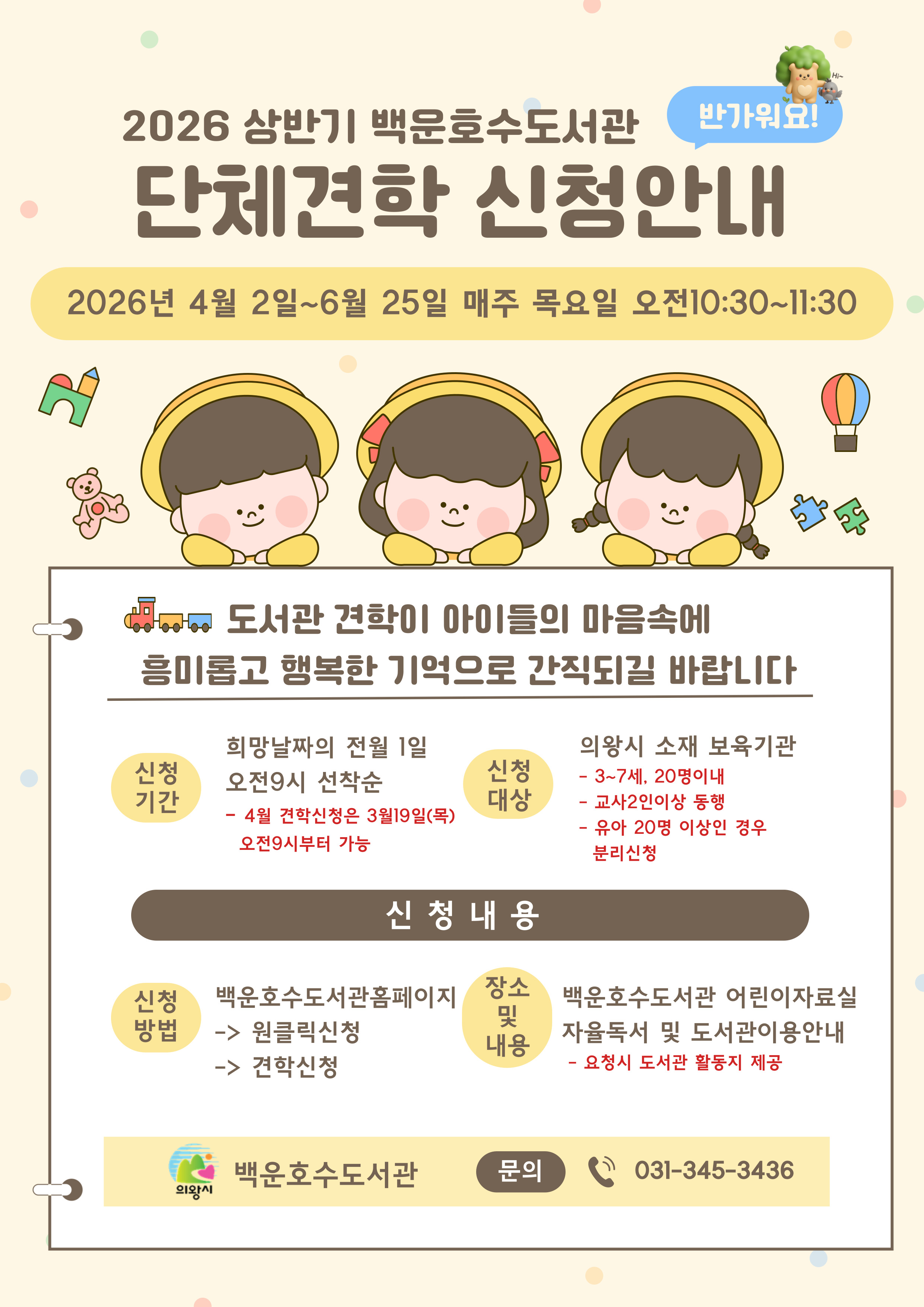 [백운호수] 2026년 상반기 백운호수도서관 단체견학 안내