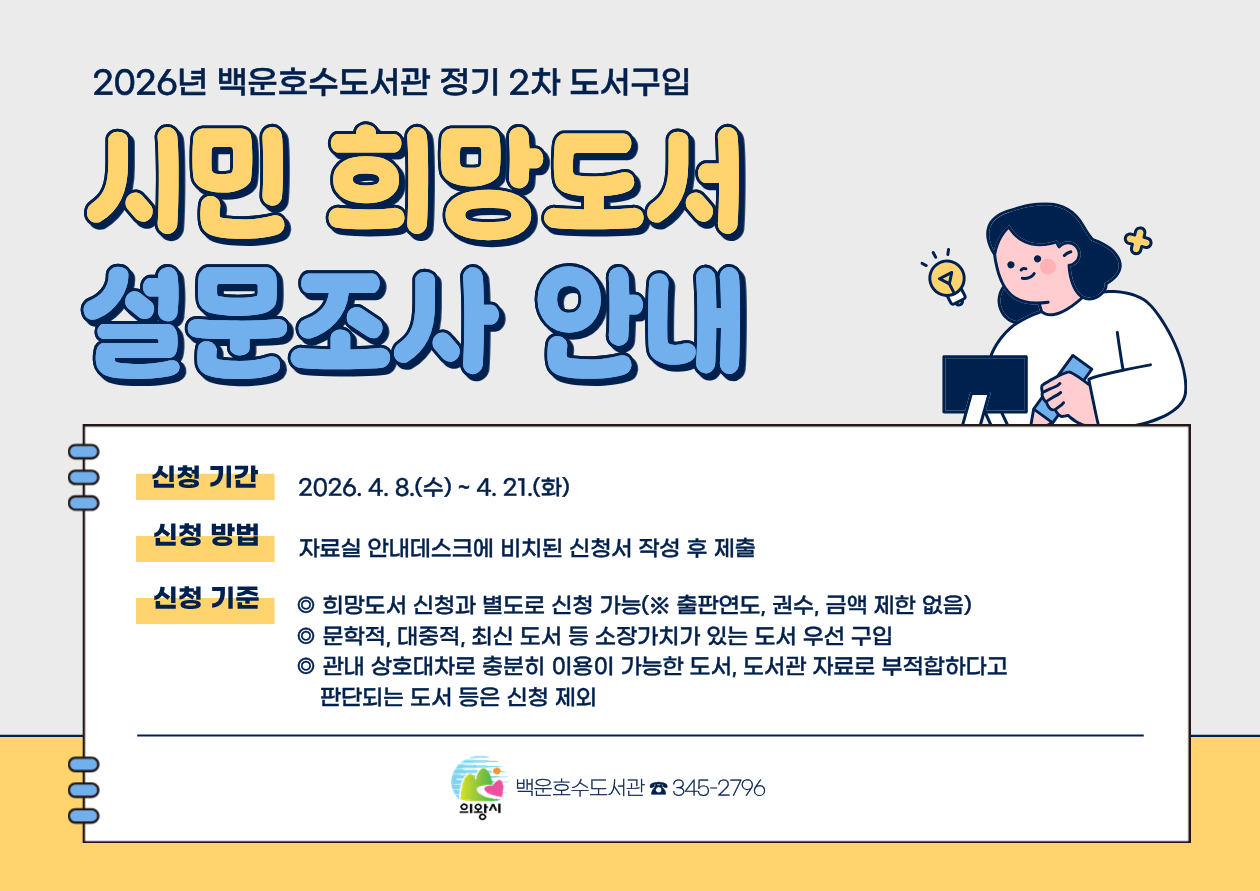 [백운호수] 2026년 정기 2차 도서구입 시민 희망도서 설문조사 안내