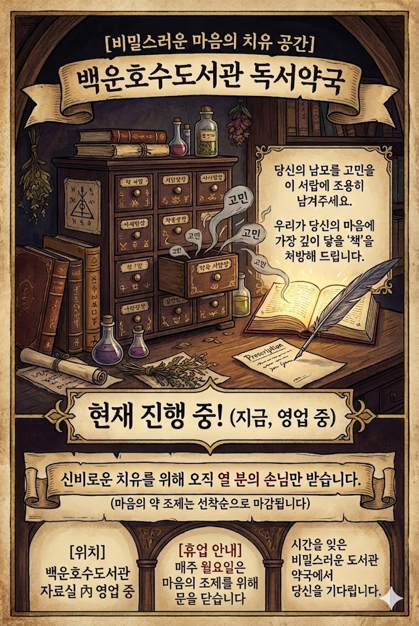 [백운호수] 백운호수도서관 독서약국이 열렸습니다.
