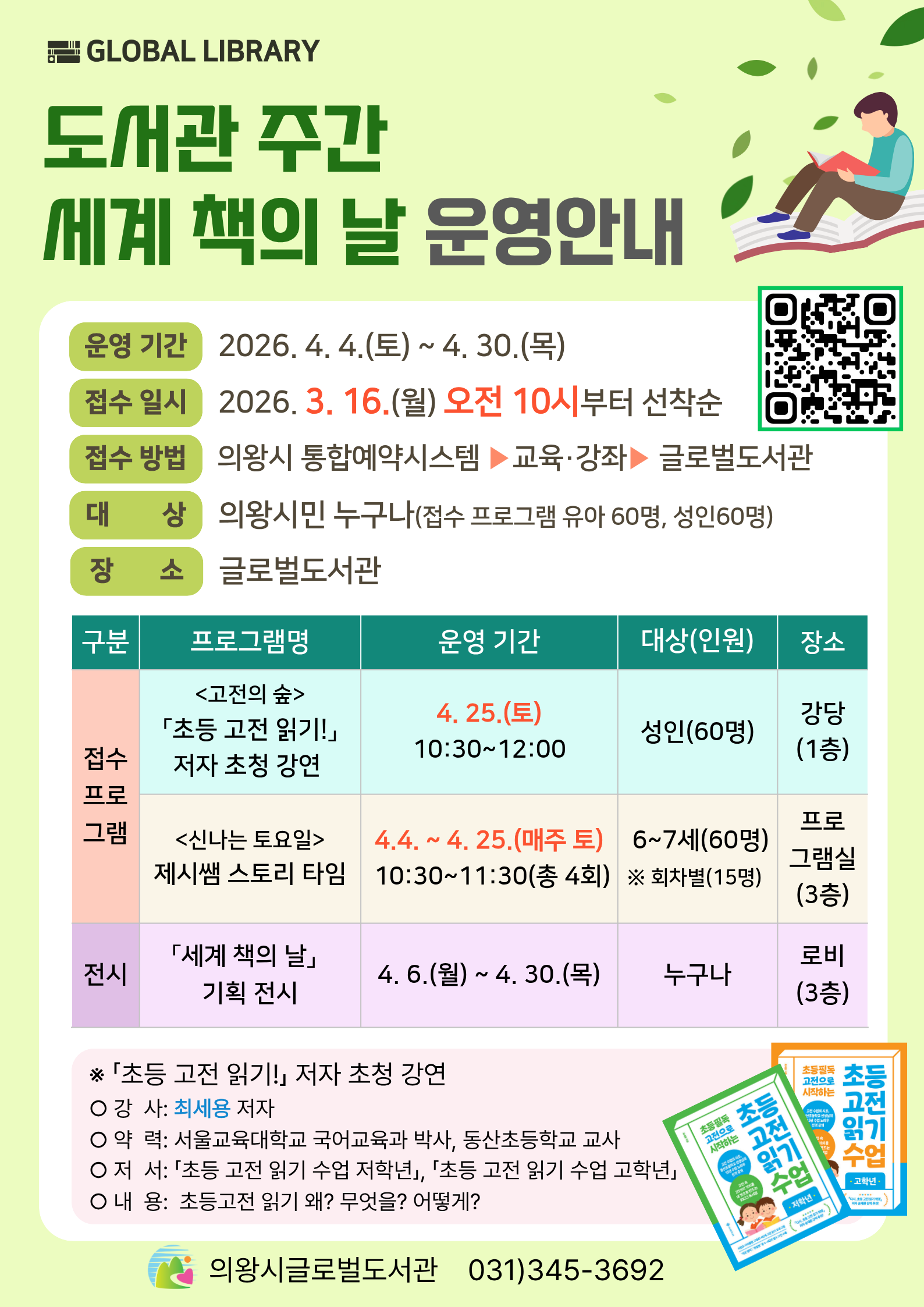 도서관 문화행사 신청 → 의왕시 통합예약시스템으로 변경됩니다.
