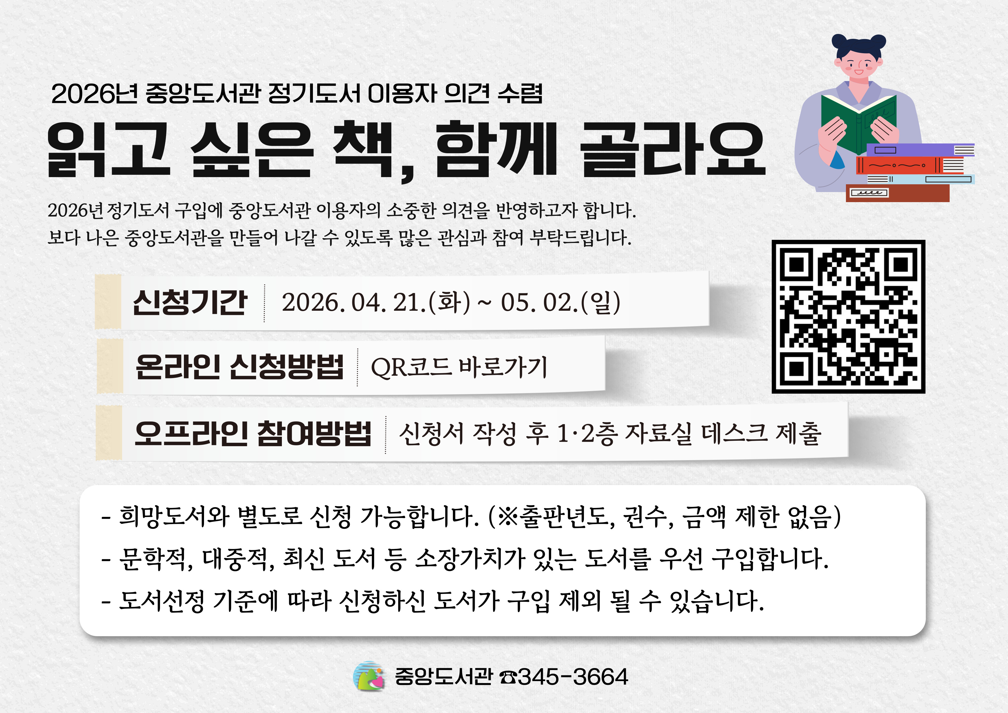2026년 정기도서 구입에 중앙도서관 이용자의 소중한 의견을 반영하고자 합니다.