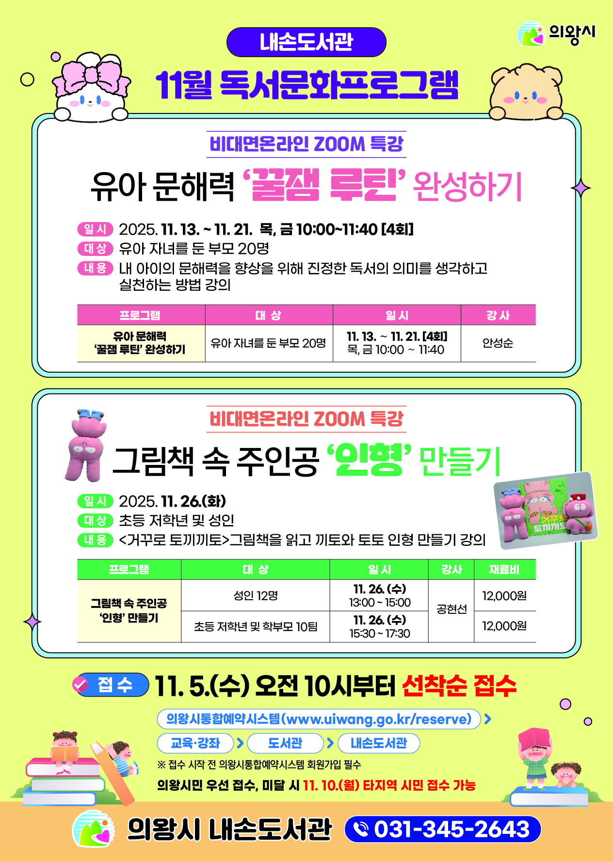 [내손]11월 독서문화프로그램 운영 안내(저자초청강연)