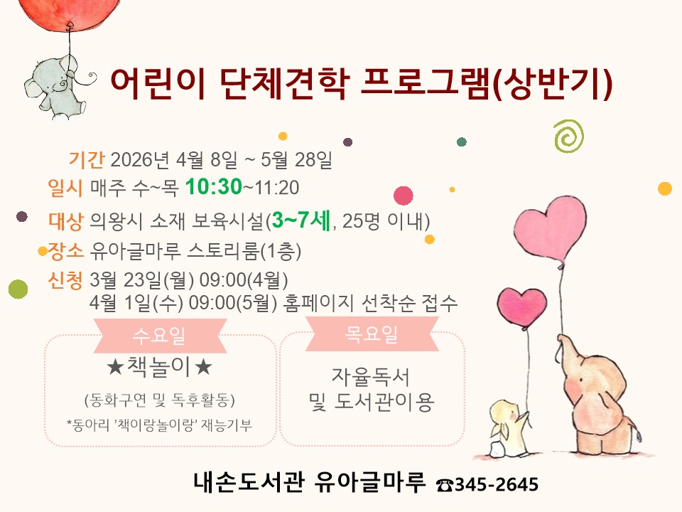 [내손도서관] 유아글마루 단체견학 프로그램 운영 안내(상반기)