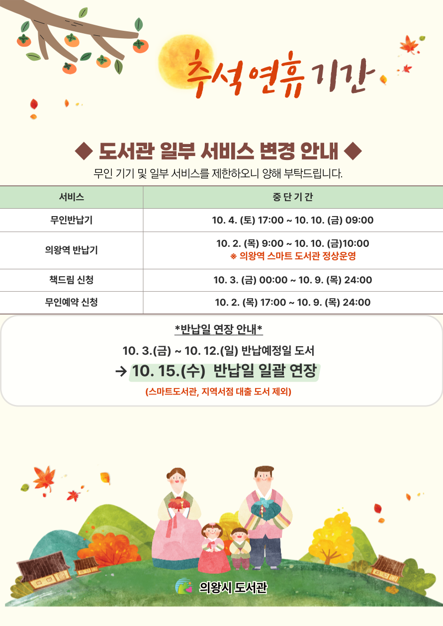 2025년 추석 연휴 포일어울림도서관 자료실 일부 서비스 변경 운영 안내