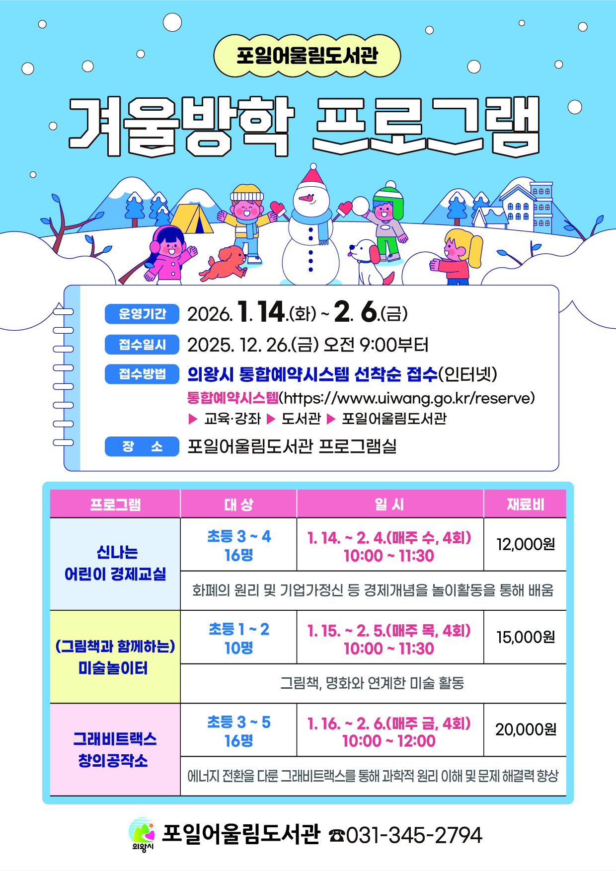 [포일어울림도서관] 2026 겨울방학 프로그램