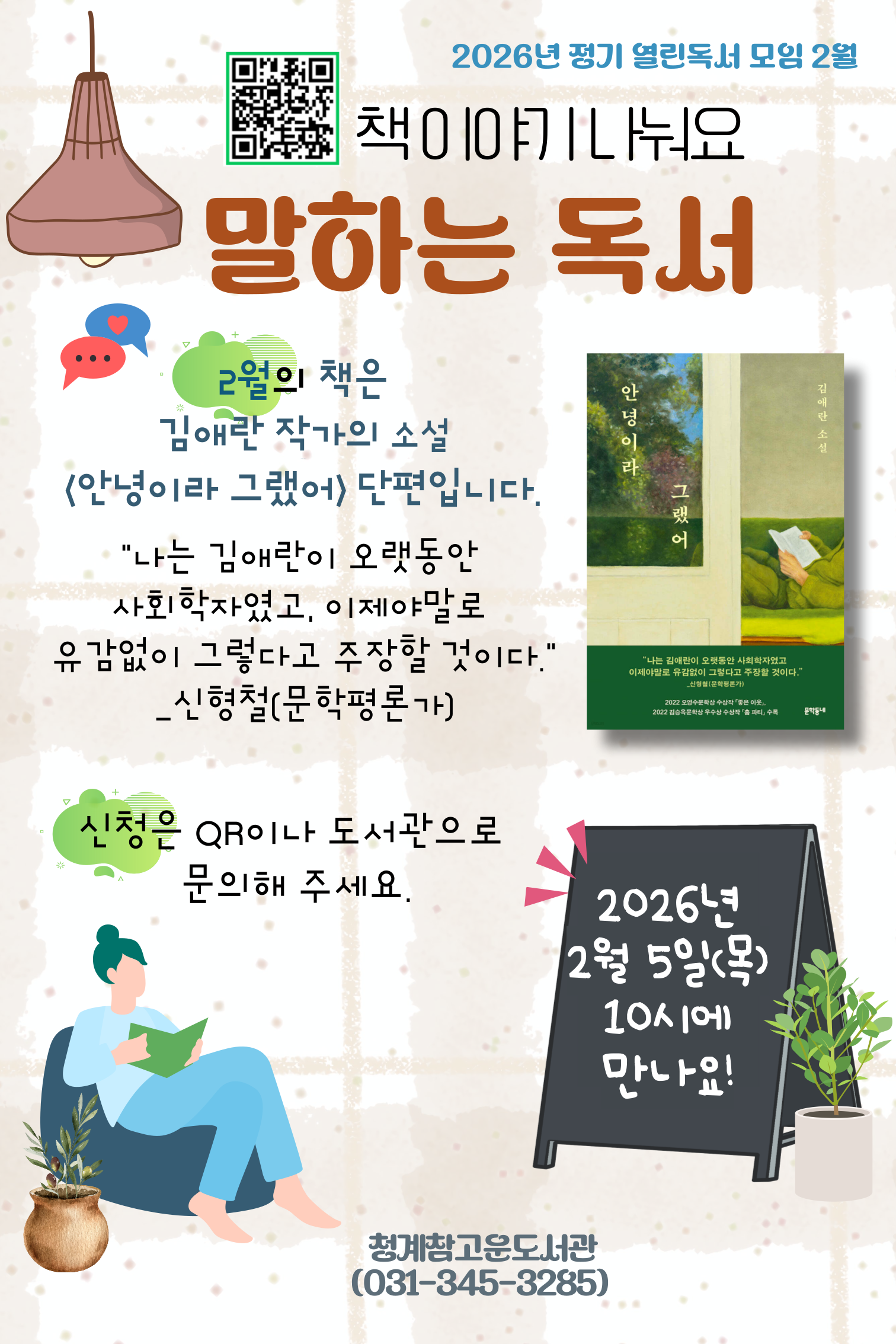 [청계참고운] 2월 열린독서모임 [말하는 독서] <안녕이라 그랬어> 안내