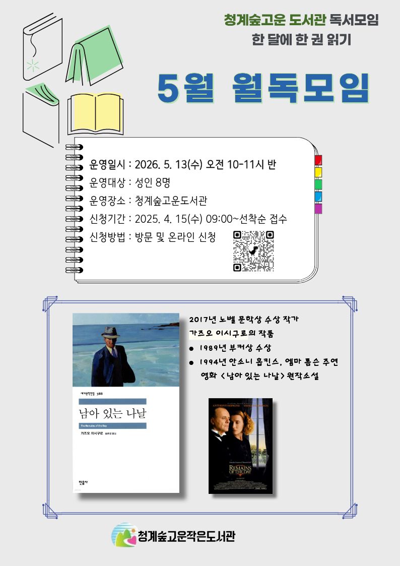 [청계숲고운]🌳5월 월독모임 『남아 있는 나날』, 가즈오 이시구로