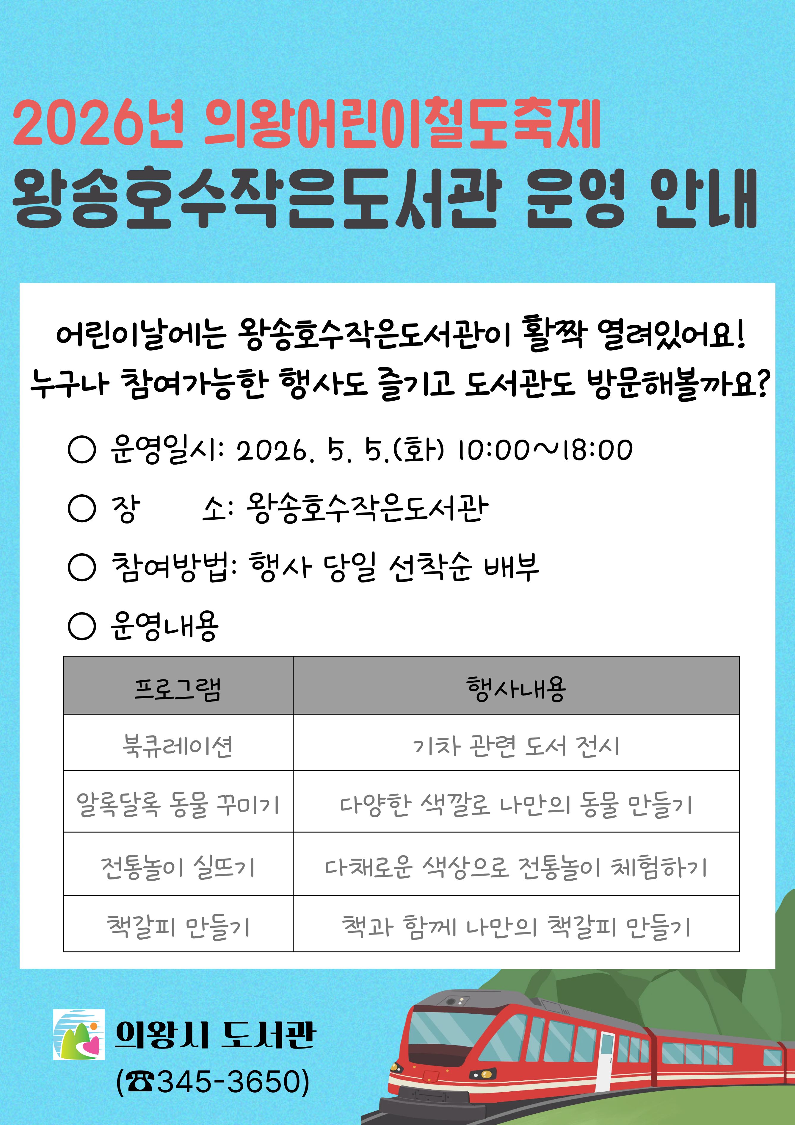 [왕송호수] 5.5.어린이날 왕송호수작은도서관 운영 안내