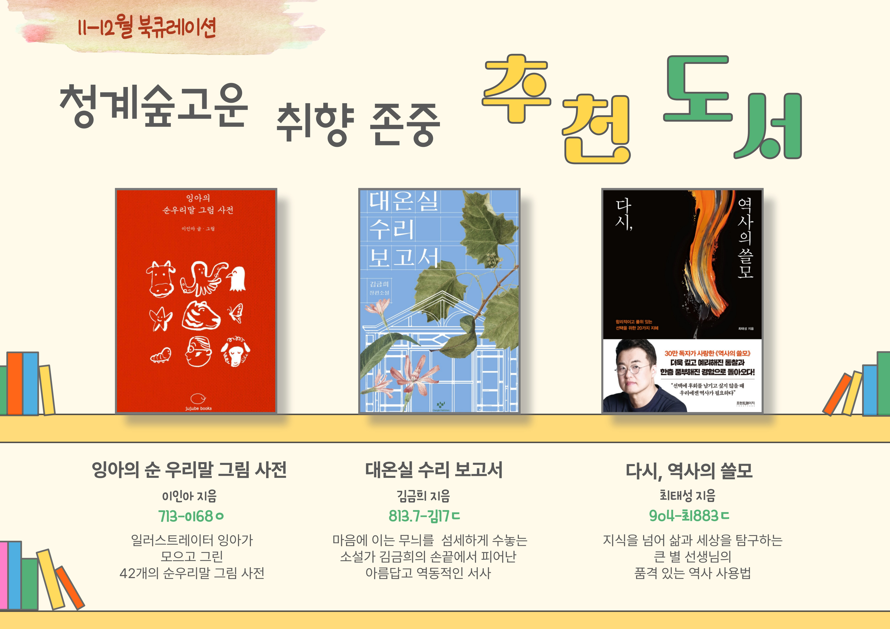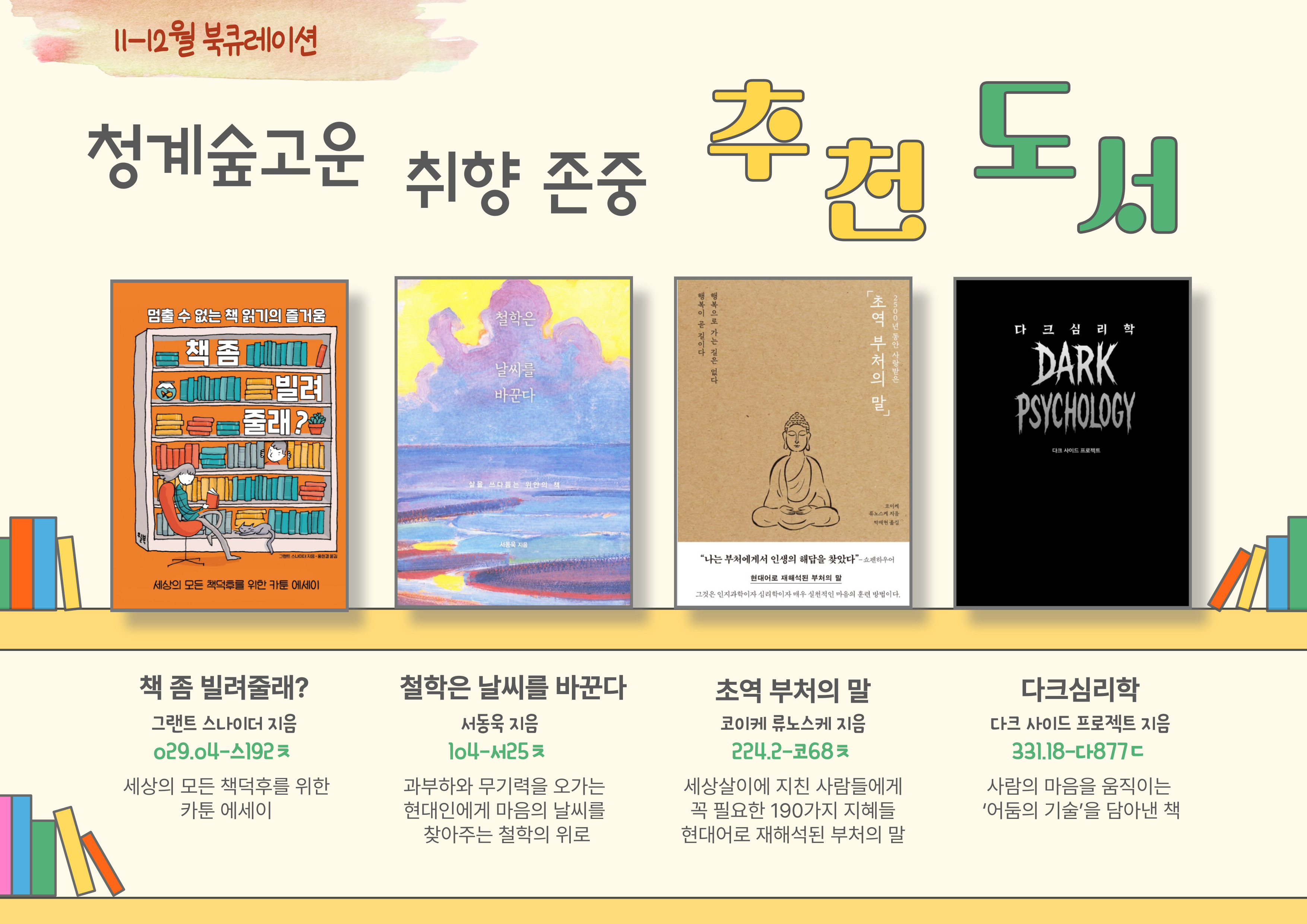 [11-12월]북큐레이션- 청계숲고운 취향 존중 📖 추천 도서