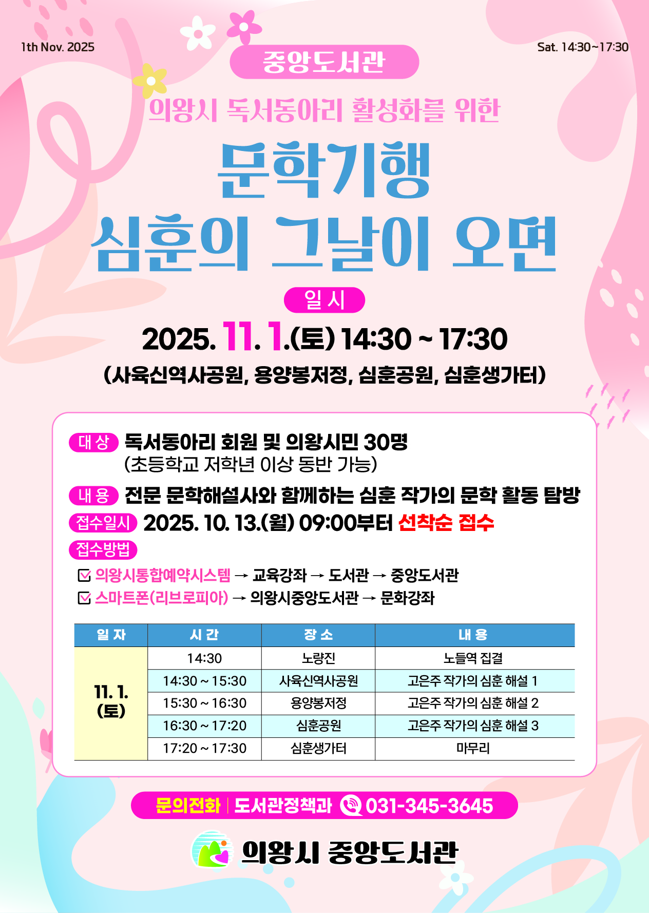 (독서동아리 활성화를 위한) 문학기행 「심훈의 그날이 오면」 신청 안내