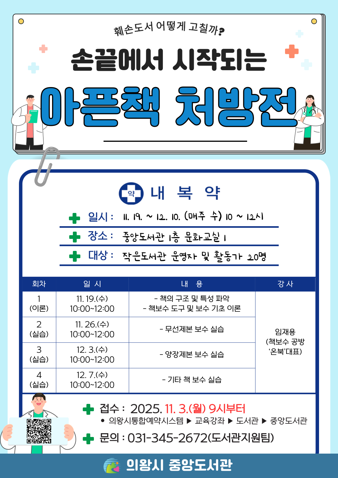 훼손도서 보수 강의 「손 끝에서 시작되는 아픈책 처방전」 안내
