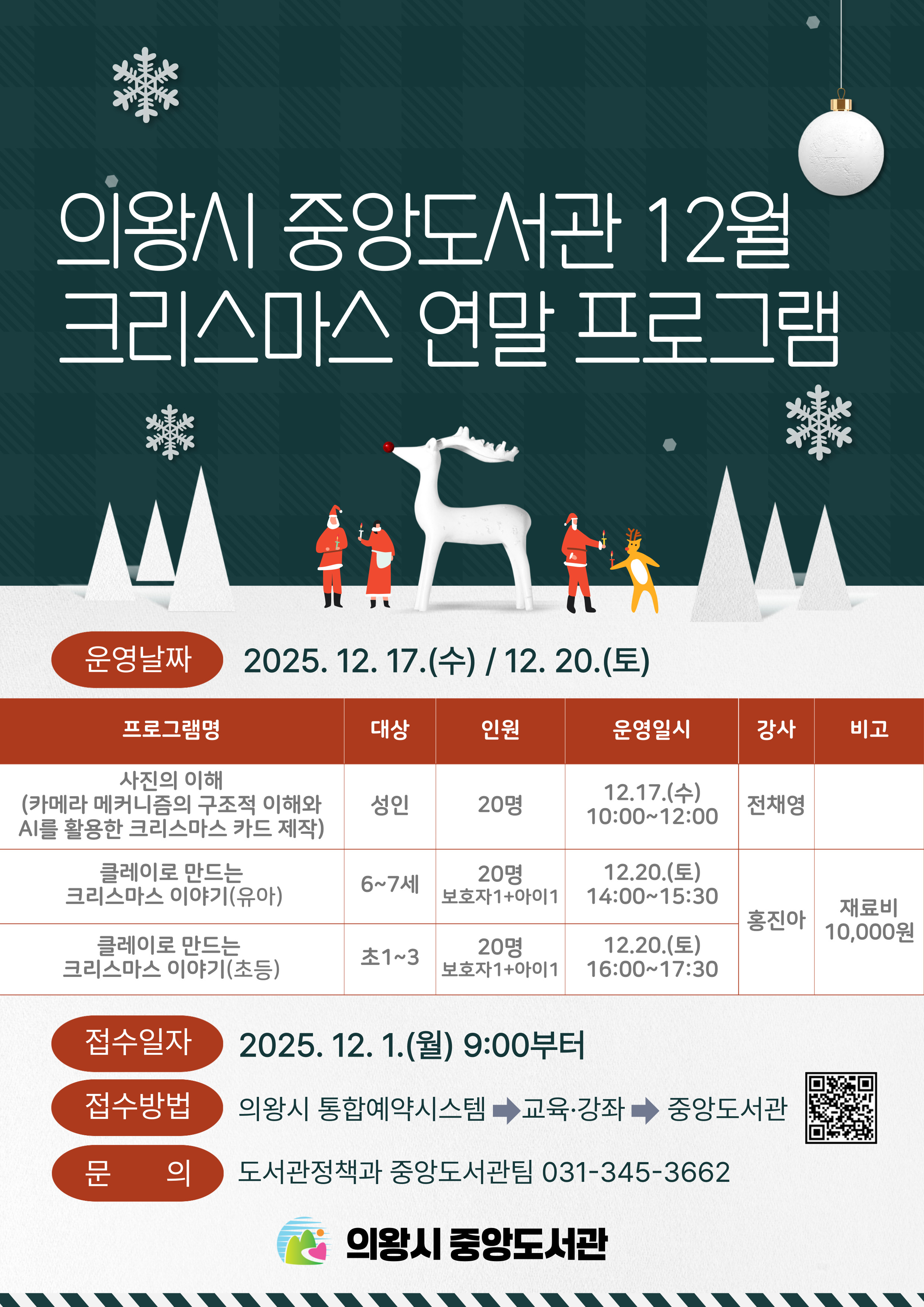 중앙도서관 12월 크리스마스 연말 프로그램 안내