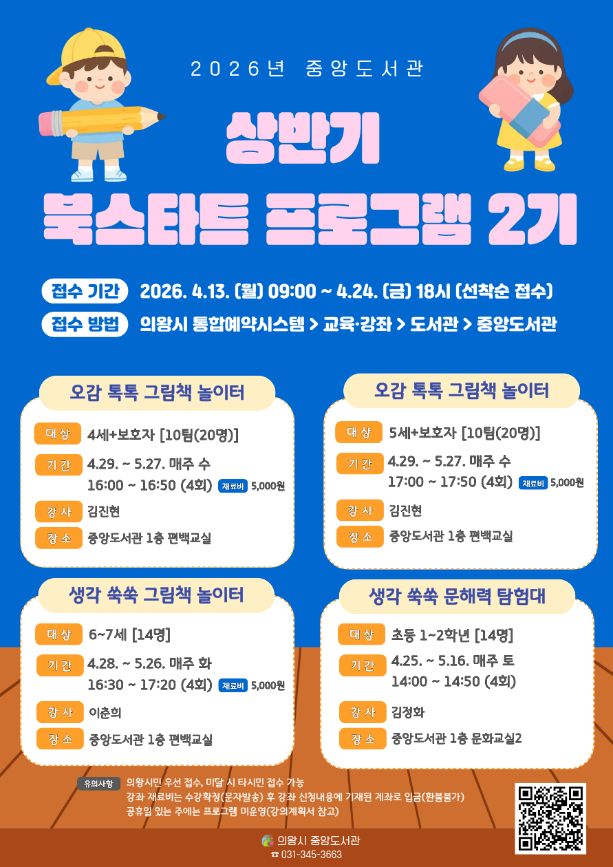 - 접 수: 의왕시 통합예약시스템(2026. 4. 13.(월) 9시~ 4.24.(금) 18시)