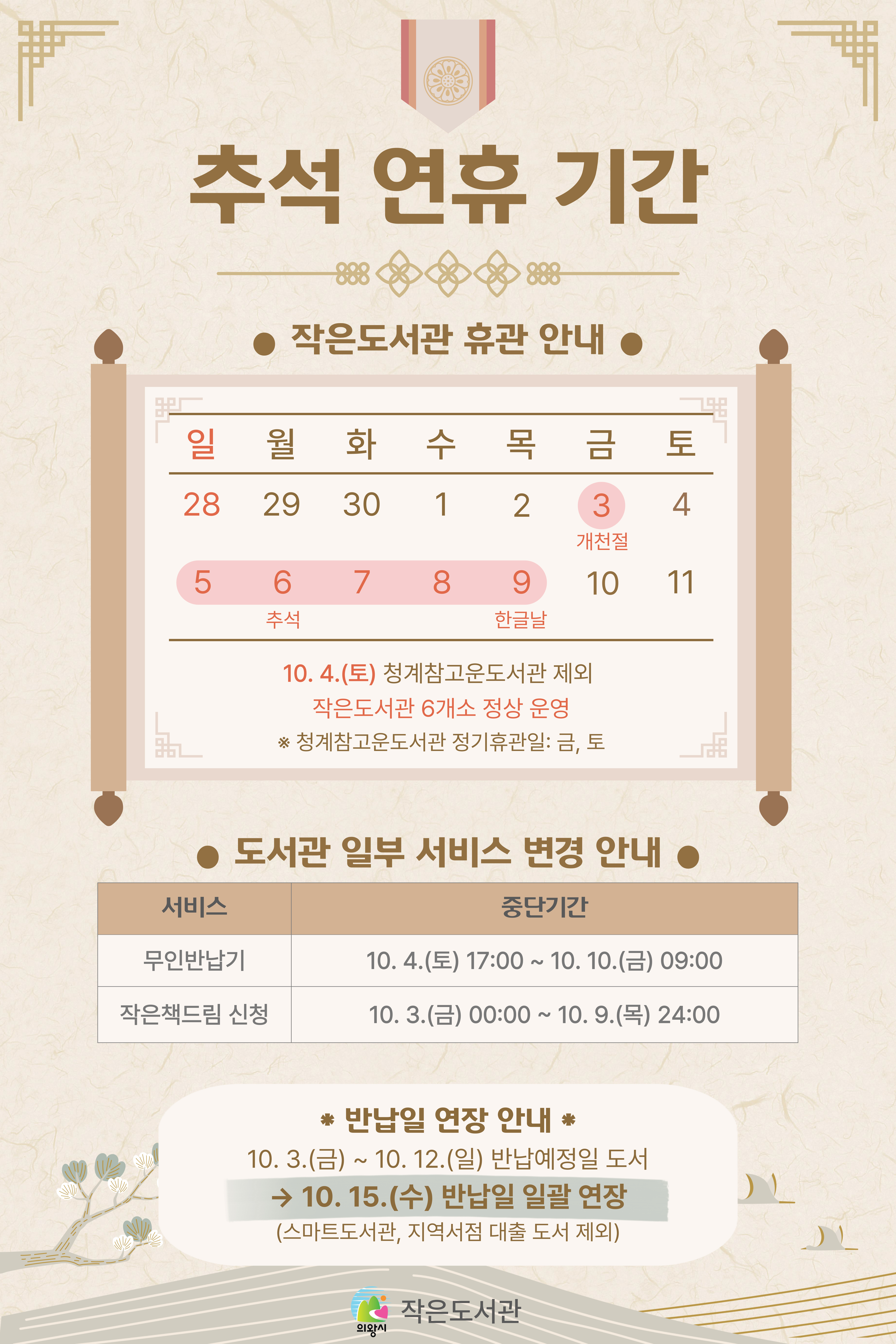 2025년 작은도서관 추석 휴무 및 서비스 변경 안내