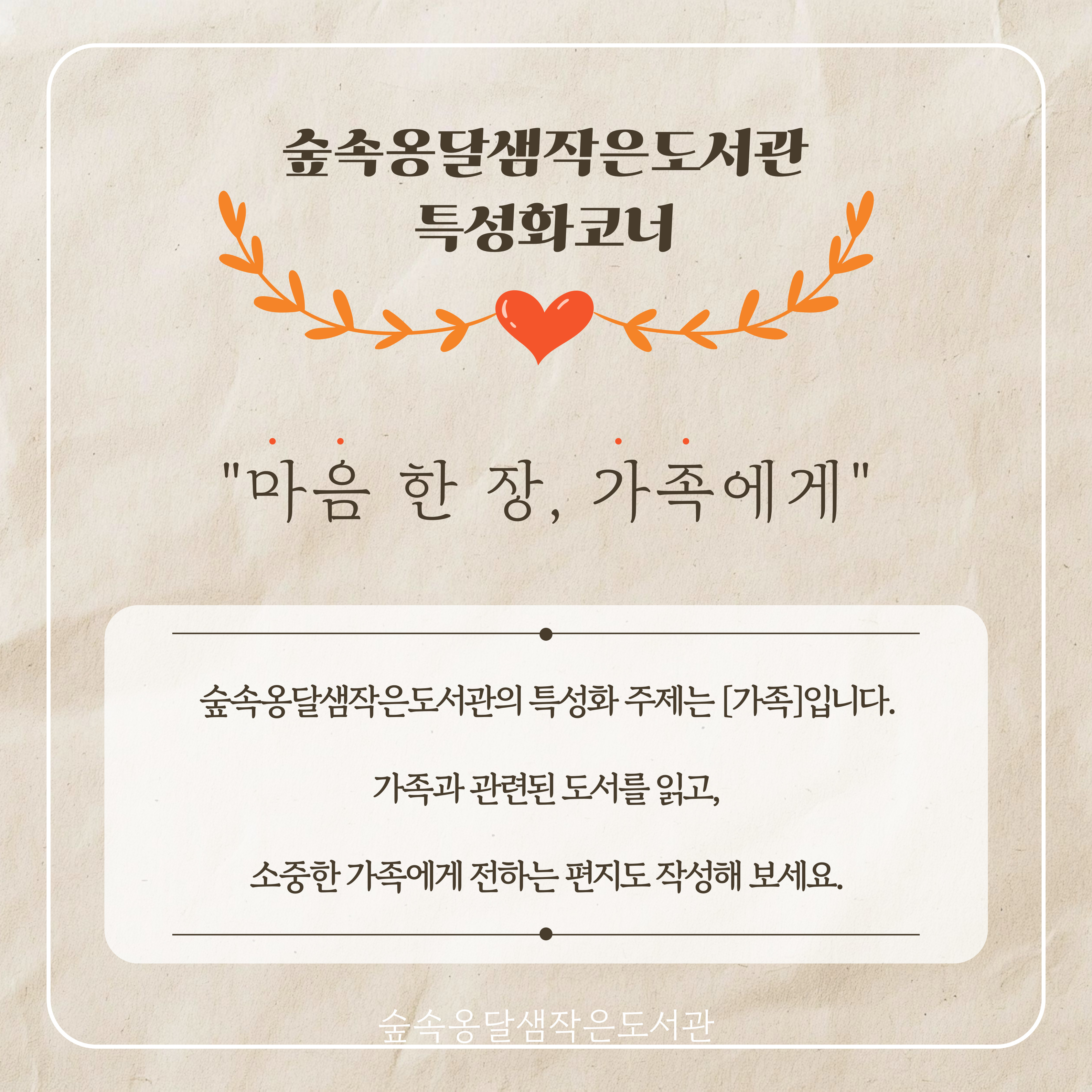 [숲속옹달샘] 특성화 코너 <마음 한 장, 가족에게>
