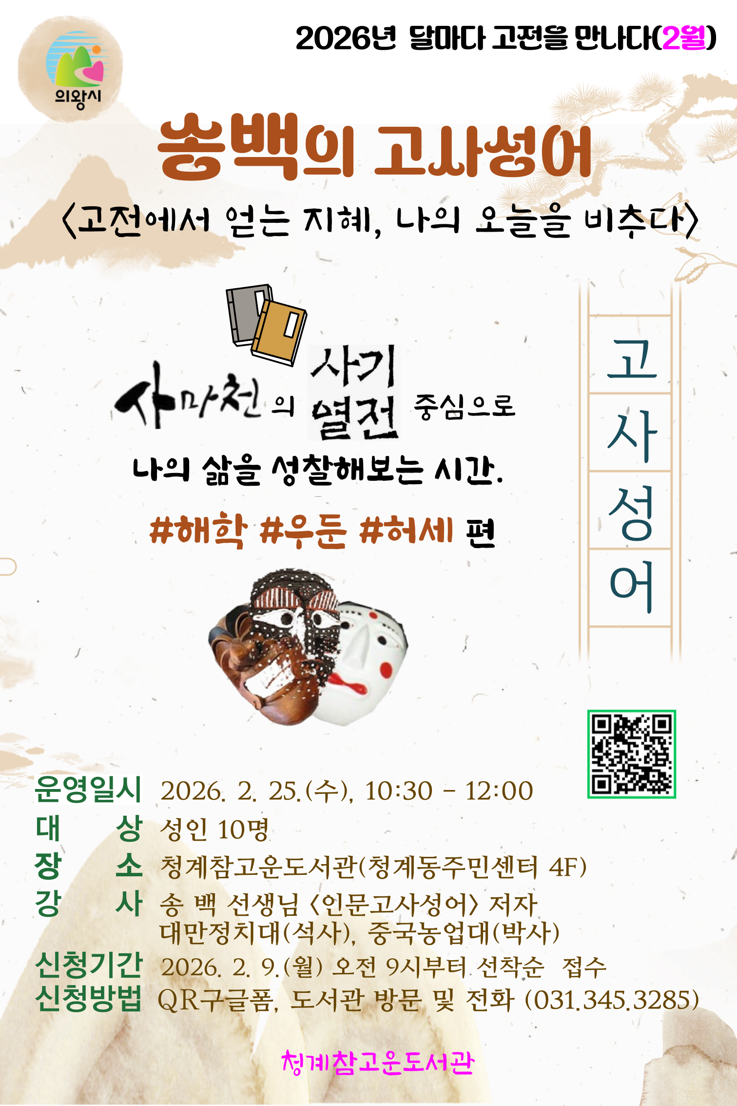[청계참고운] 2월 <달마다 고전을 만나다> 안내