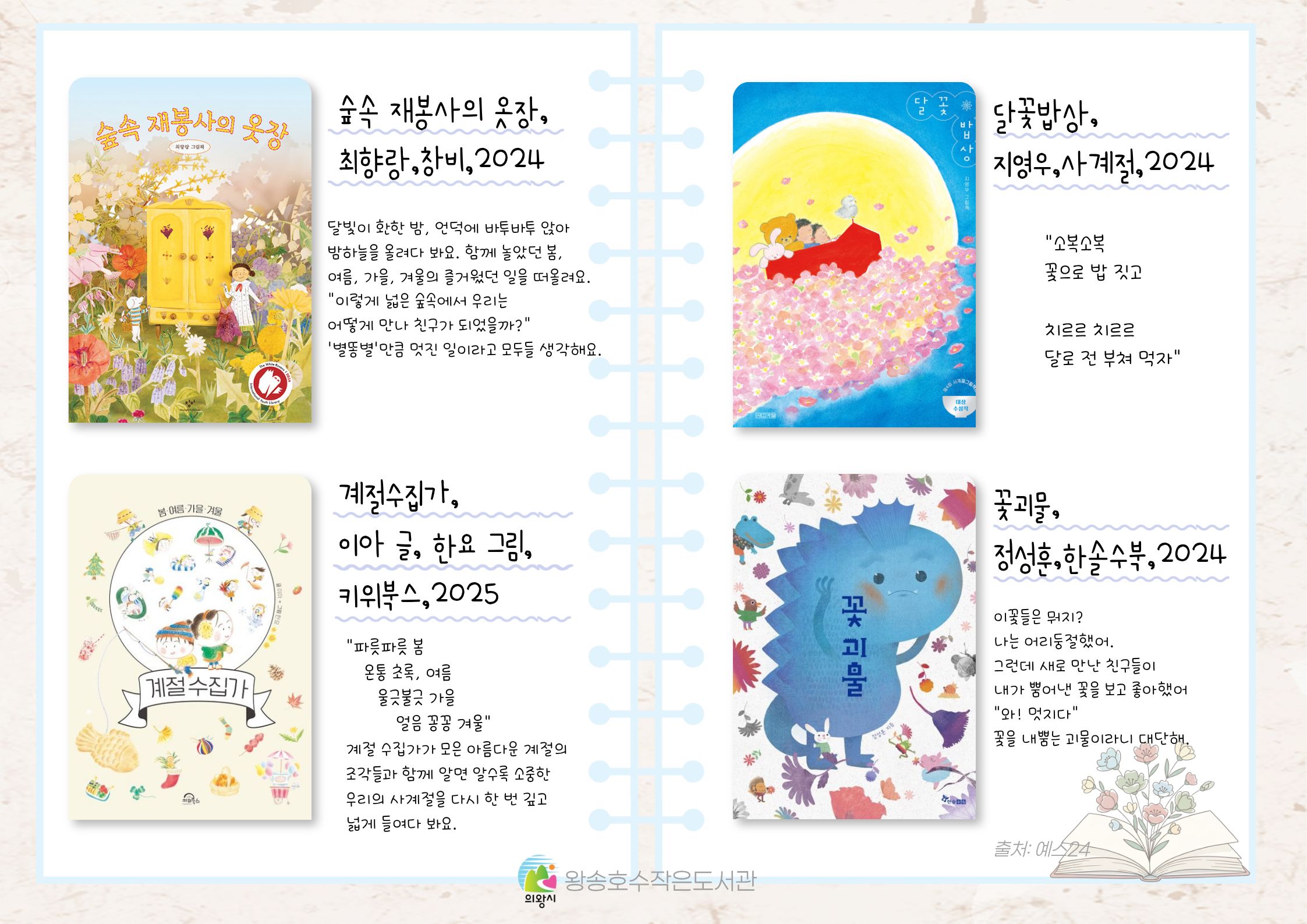 왕송호수작은도서관에서 <책 속에 피어난 꽃이야기> 를 담은 그림책들을 만나보시길 바랍니다. 🌸📖