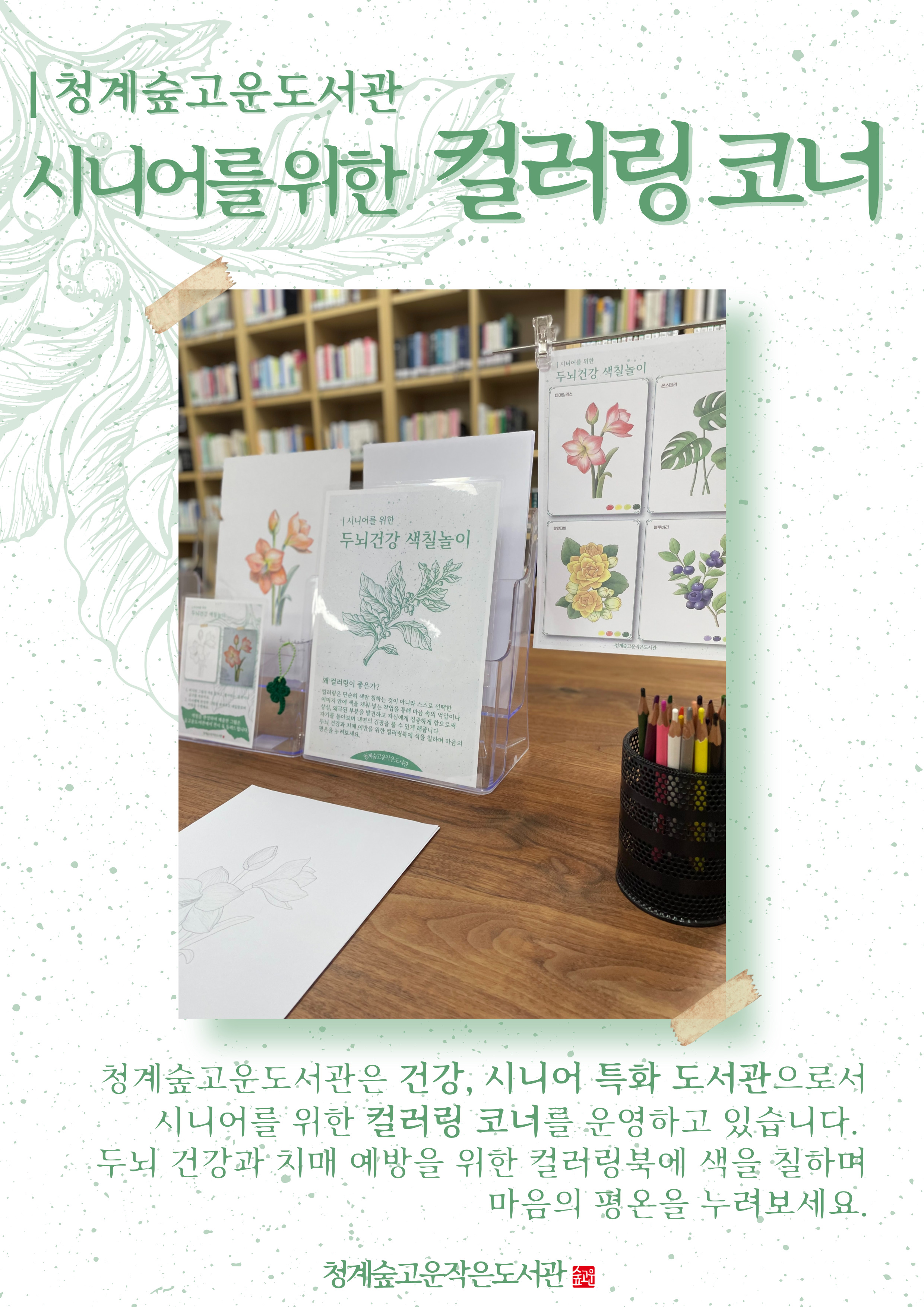 [청계숲고운] 🌷시니어를 위한 컬러링코너 운영 안내🎨